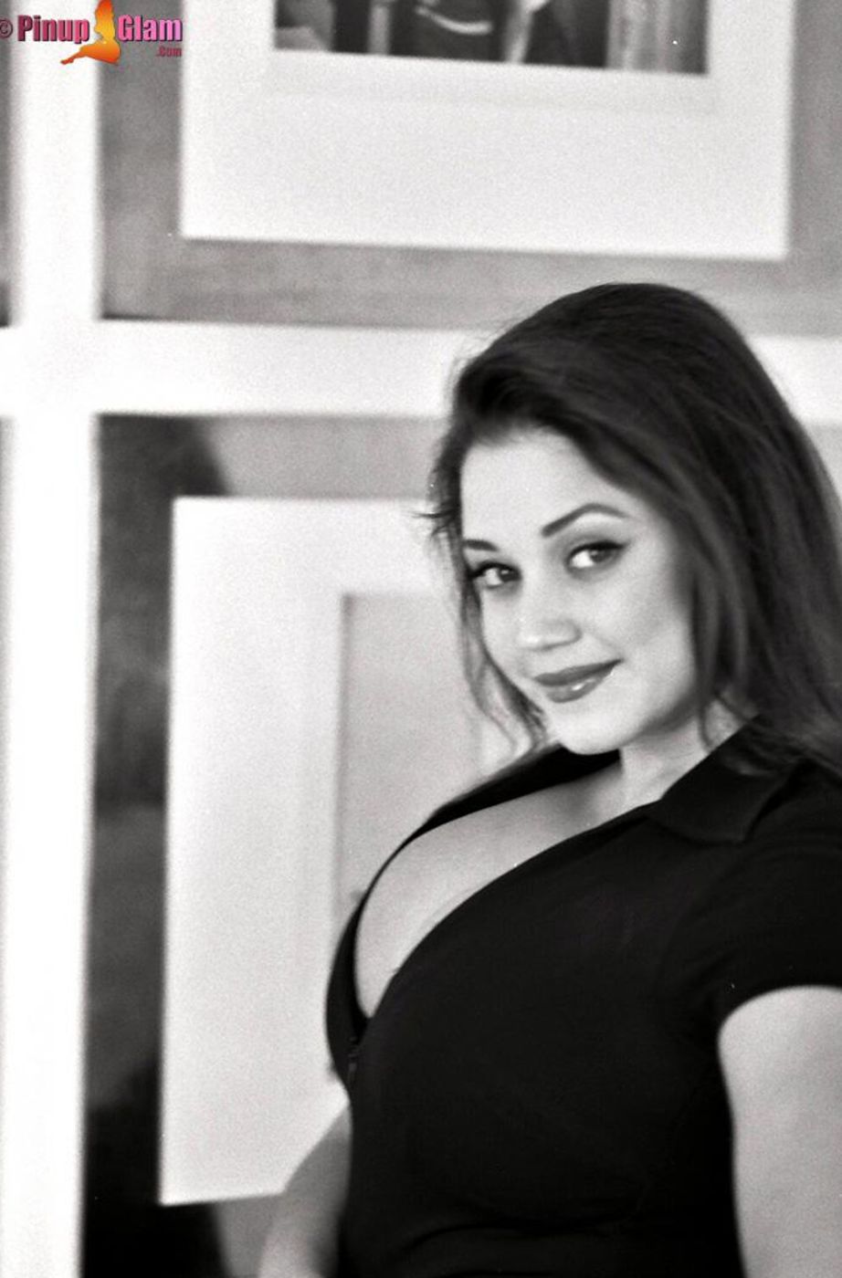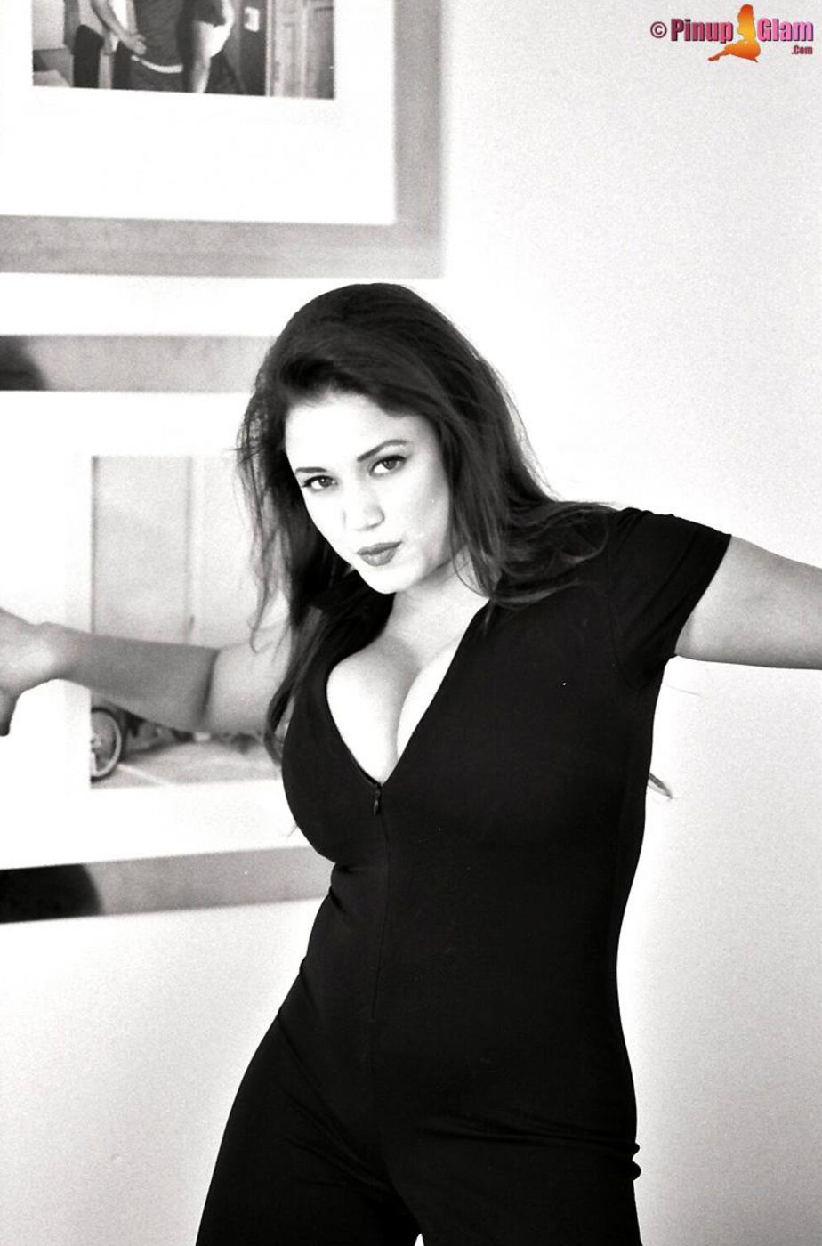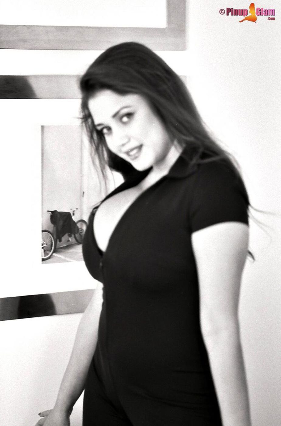 Hot momma Miriam Gonzalez with a nice cleavage doing a black and white photoshoot.