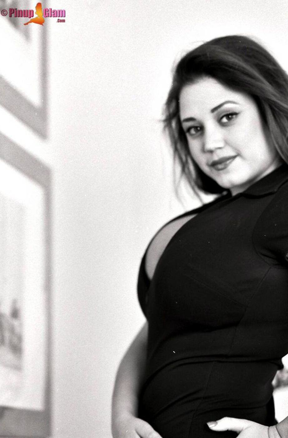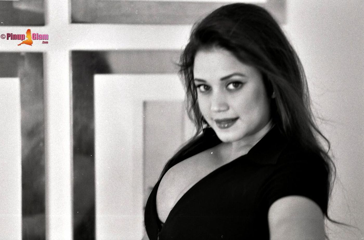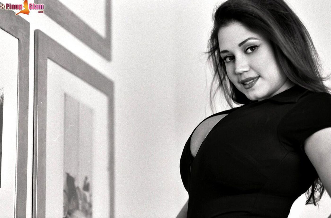 Hot momma Miriam Gonzalez with a nice cleavage doing a black and white photoshoot.