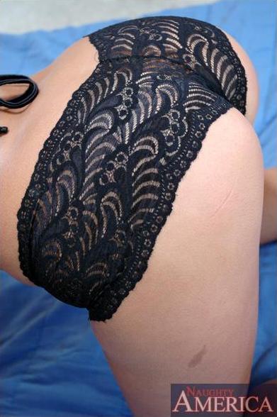 Misty Magenta shows her amazing ass in her sexy laced black panties and without them.