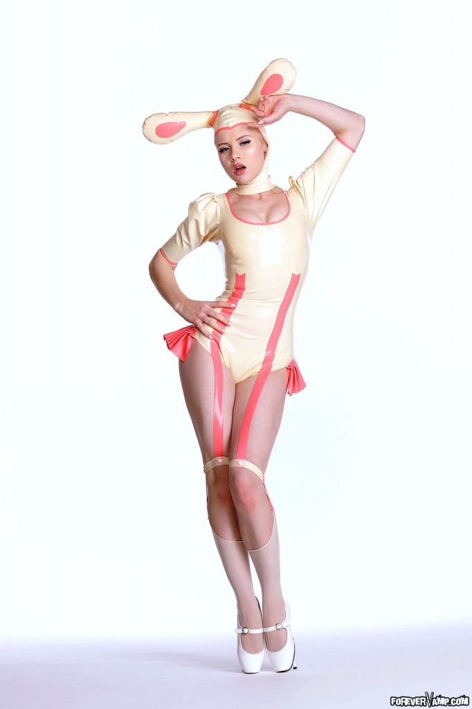 Kinky teen chick Mosh strips her bunny costume and shows her huge tight ass.