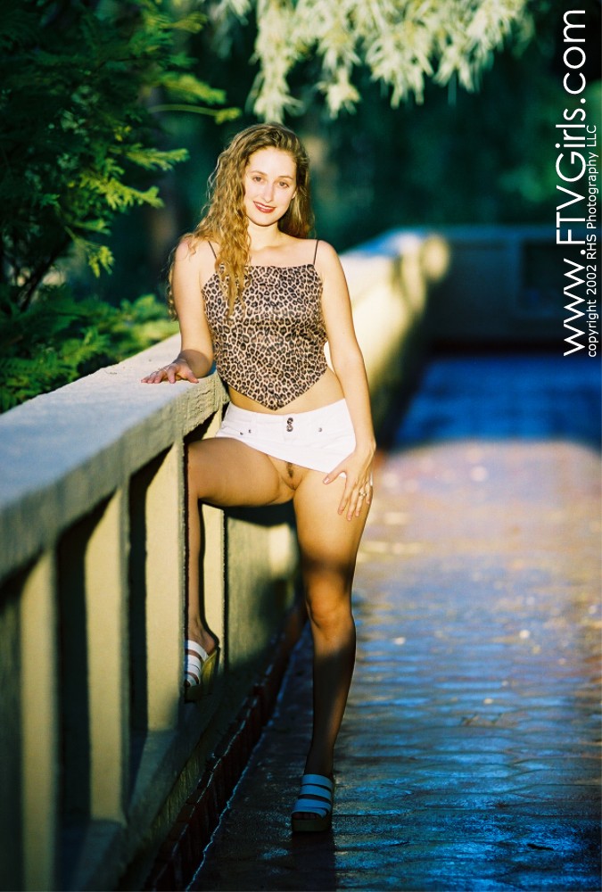 Hot blonde Nicole FTV strips her white skirt outdoors and shows her trimmed cunt.