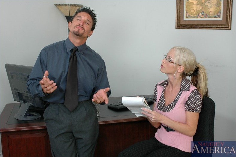Nikki Benz gets naked in her office and geta her cunt cucked after giving head.