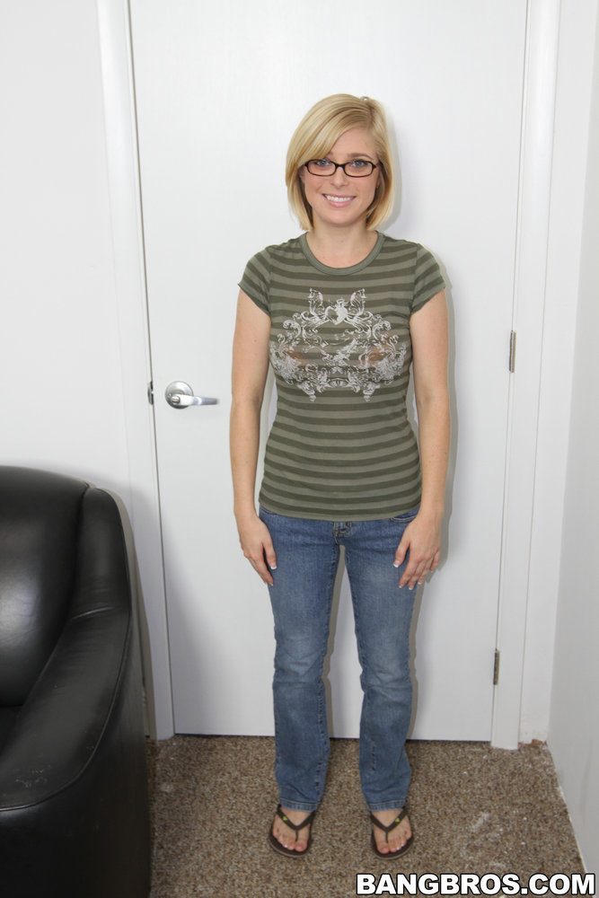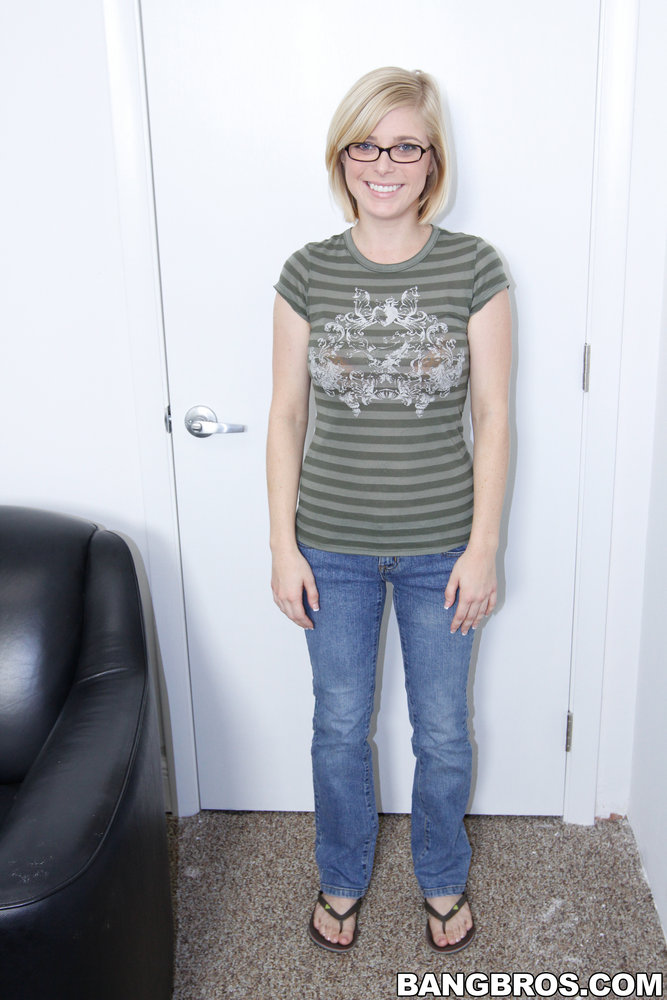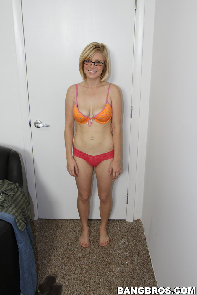 Nerdy blonde amateur with sexy glasses and big titties shows off her wonderful body with pride