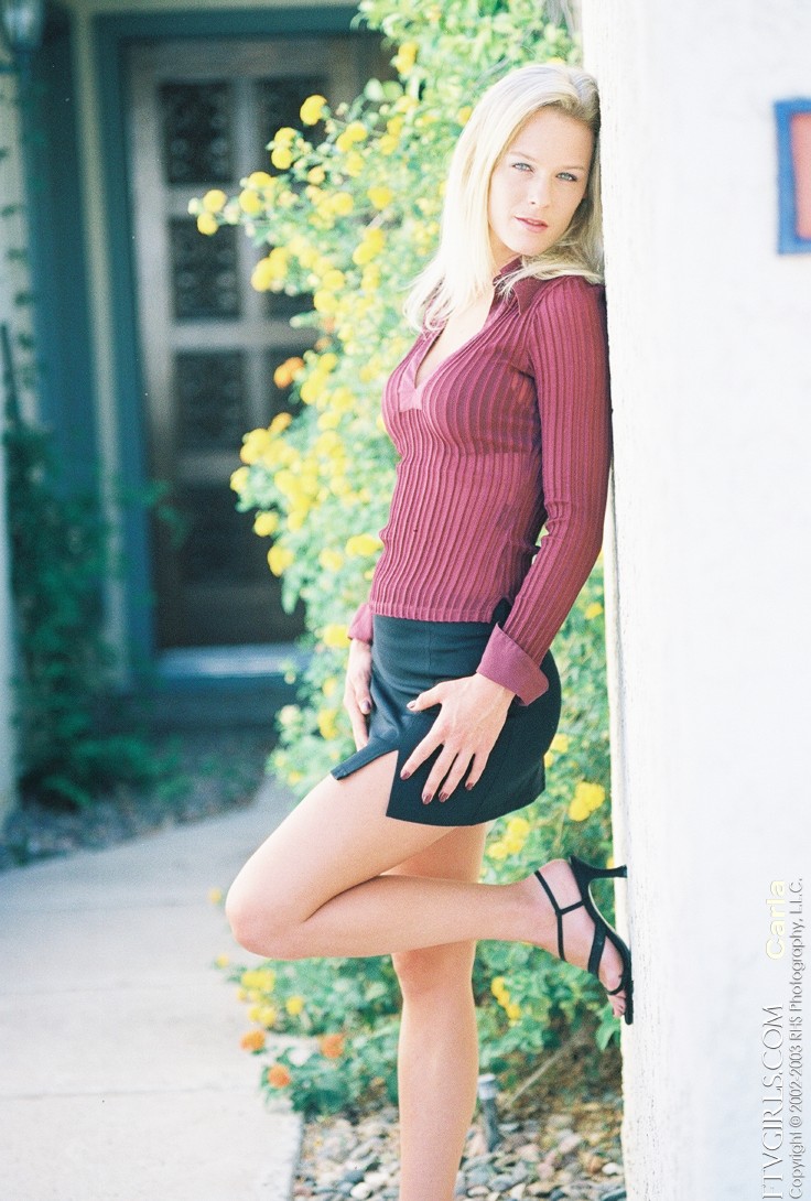 Busty blonde babe Phoenix Ray strips her clothes outdoors and shows her muff.