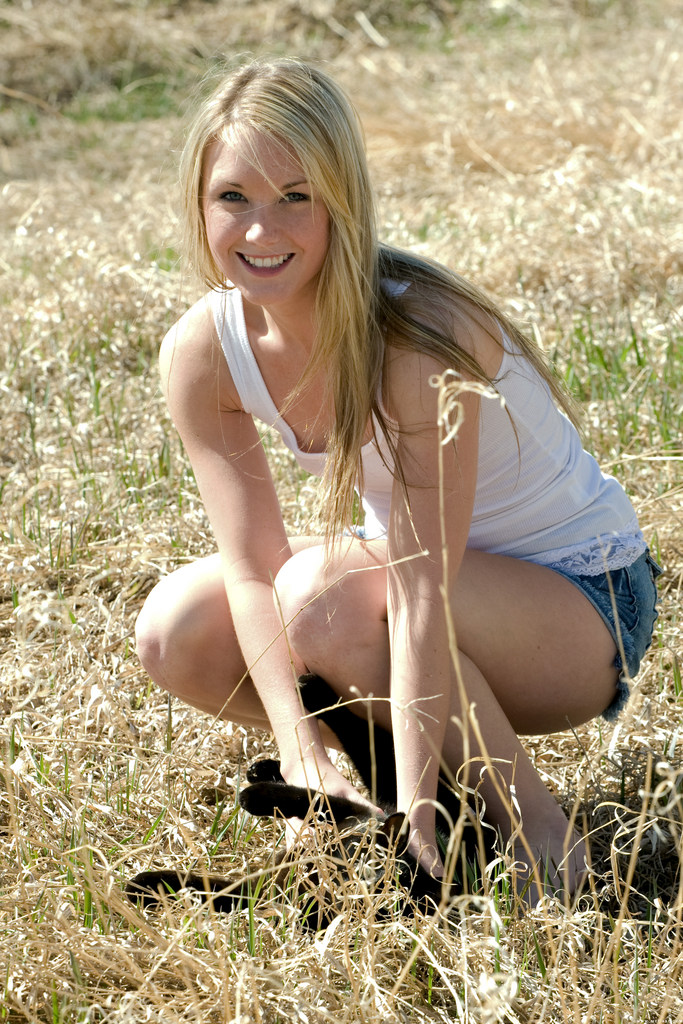 Seductive teen gal Private Jewel strips her mini skirt outdoors and shows off.