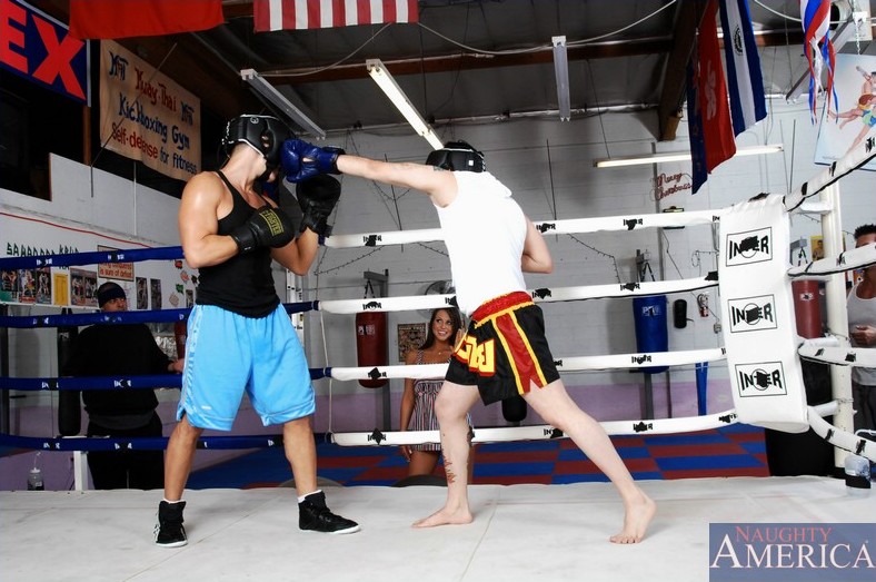 Rachel Roxxx drops down her stripped dress and gets fucked in the boxing ring.