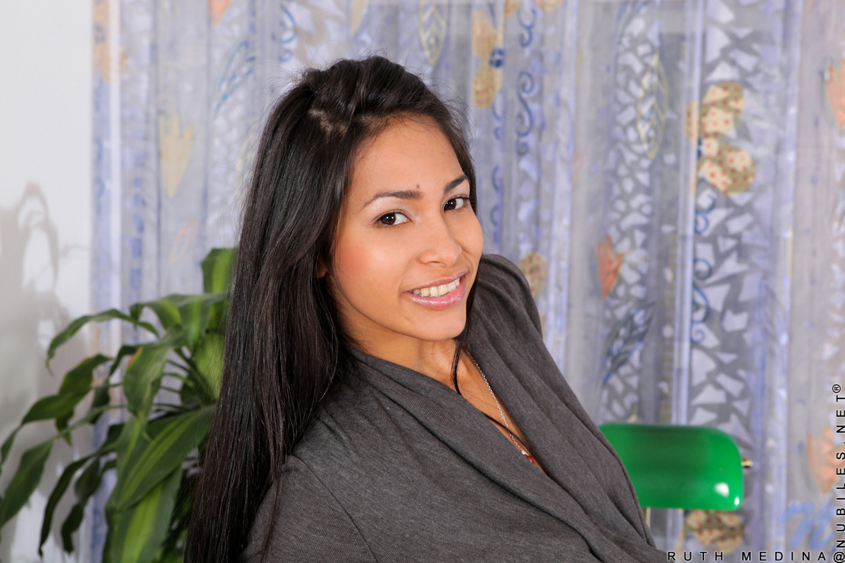 Foxy brunette gal Ruth Medina strips her grey outfit and shows her amazing body.
