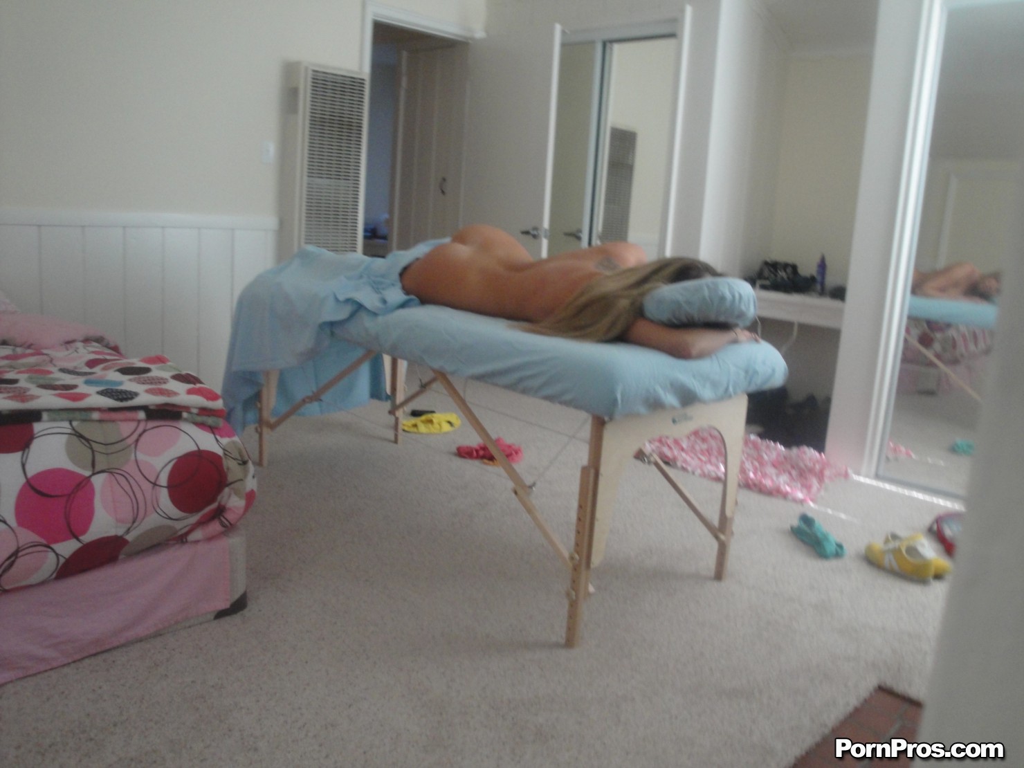 This curvy chick shows off her large titties and gets used by her handsome masseur so well