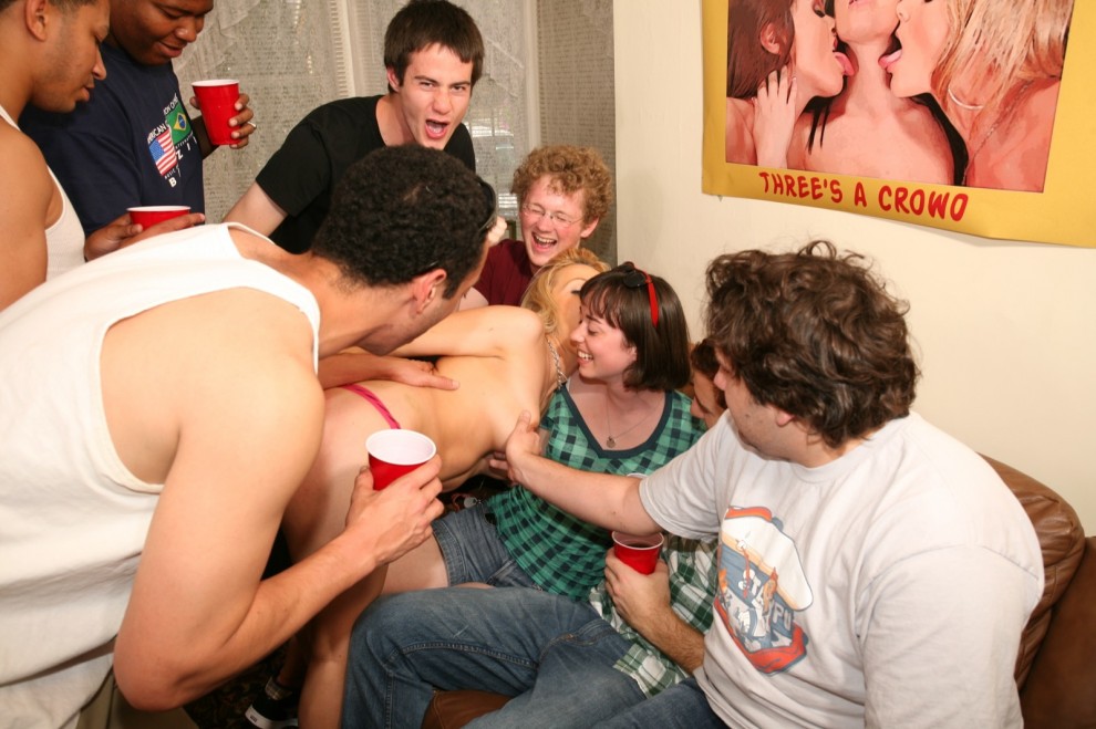 Samantha Sin and Taisa Banx got drunk a wild party and have amazing hardcore orgy.