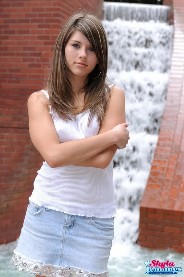 Hot blonde teen Shyla Jennings takes off her tight skirt and shows us her round ass.
