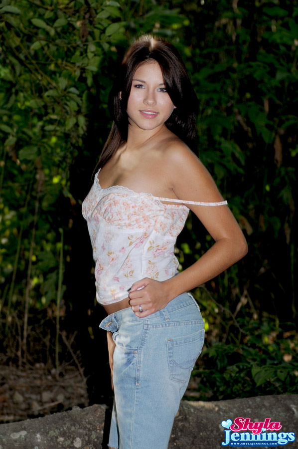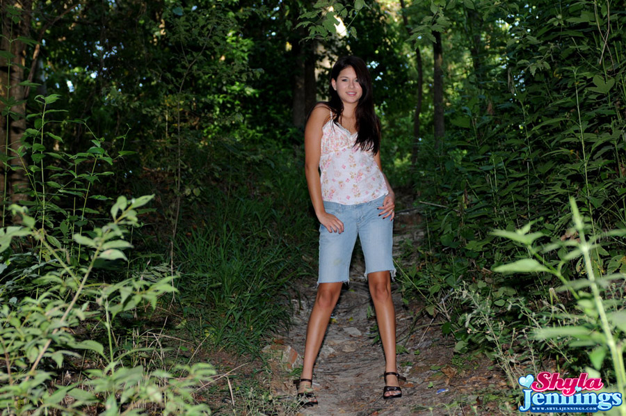 Smoking hot teen babe Shyla Jennings takes off her clothes outdoors and shows off.