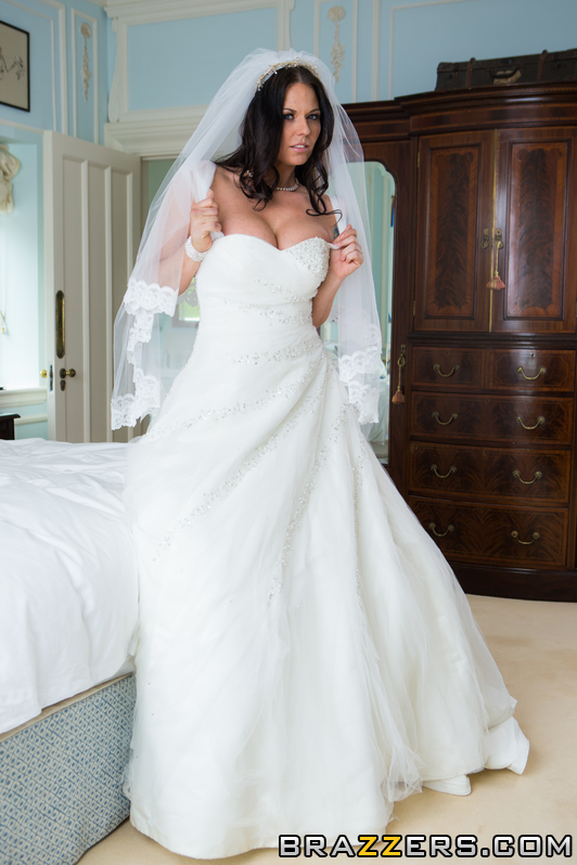 Yummy brunette cutie tries on a wedding dress when her groom joins her for a hard fuck