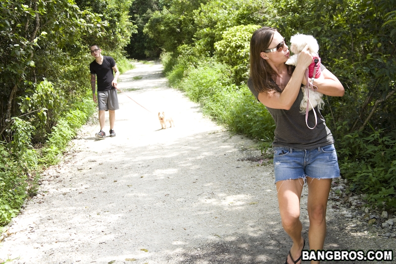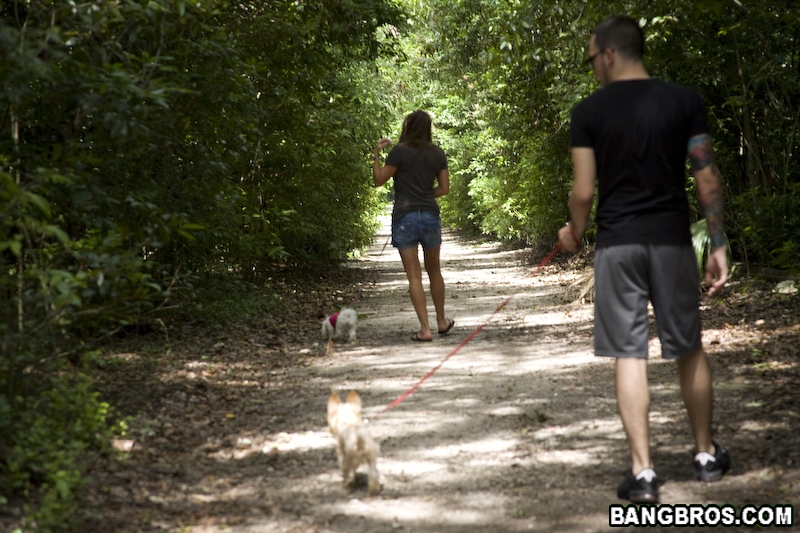 Sky Taylor strips her clothes off in the woods and gets rammed by nerdy stud.