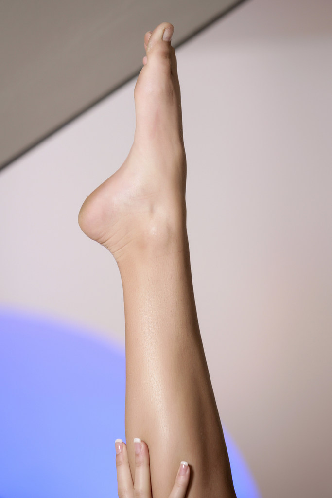 Beautiful small breasted gal Sonia Red takes her heels off and licks her sexy legs.