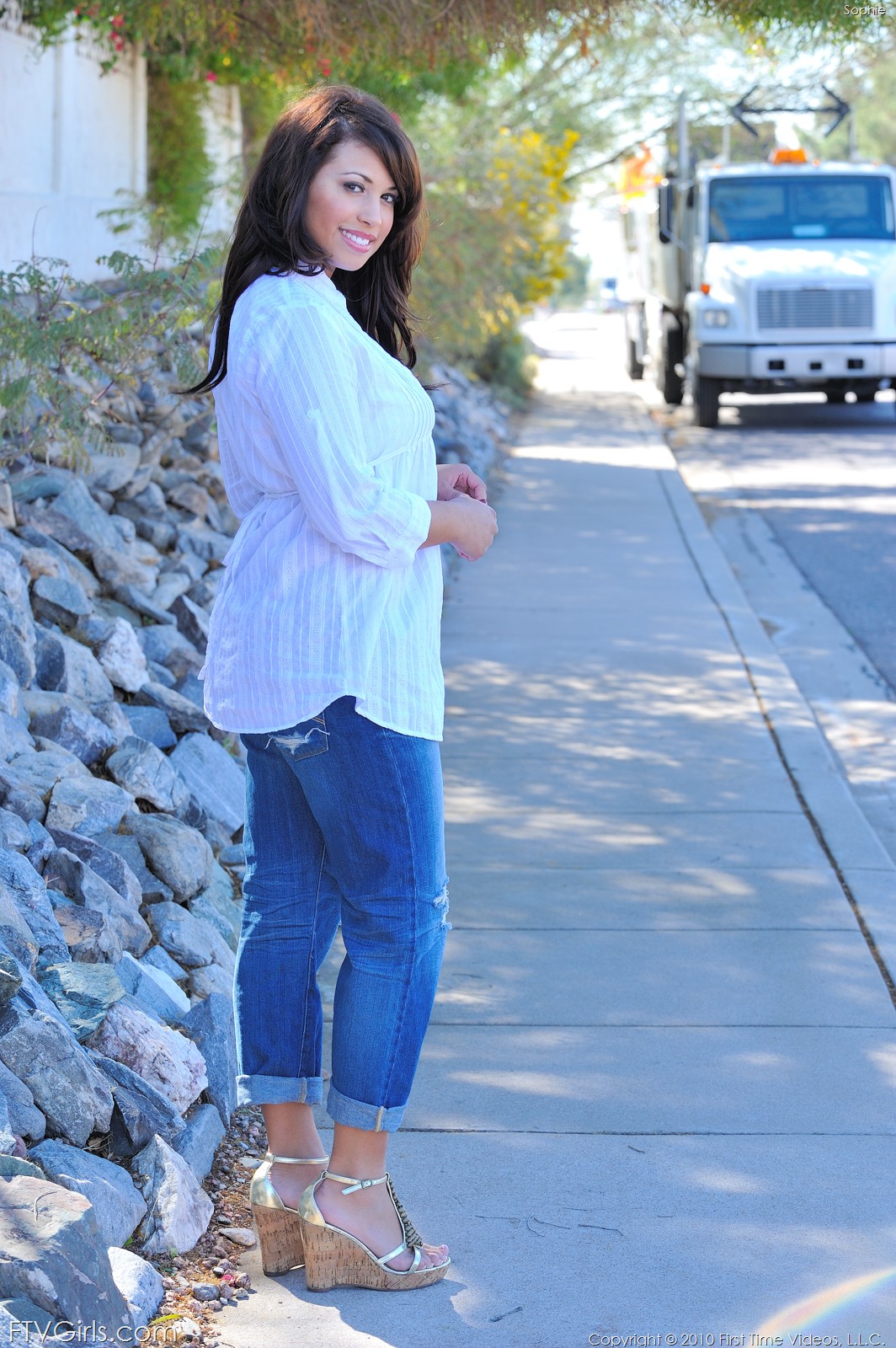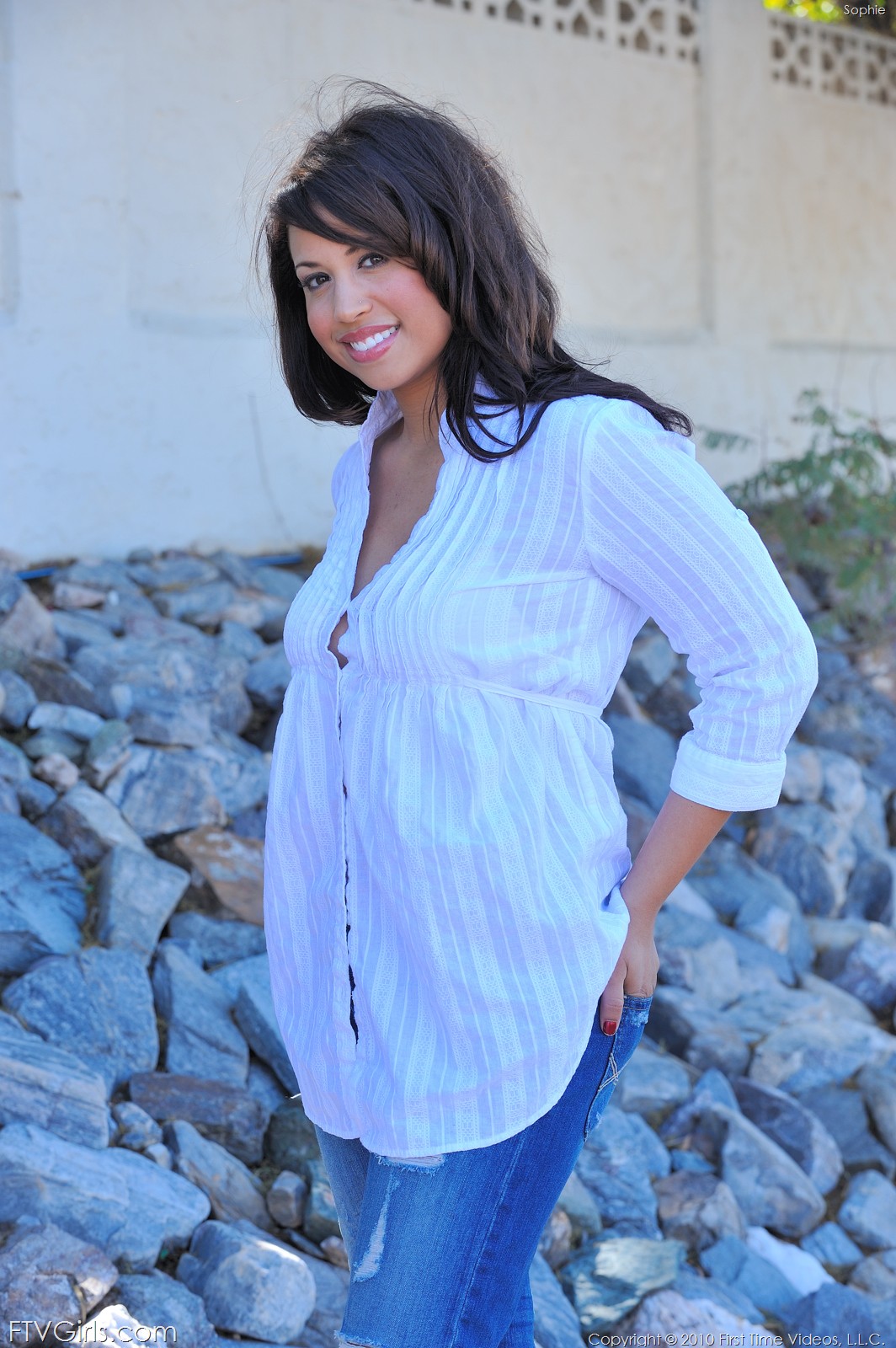 Attractive and sexy Sophie FTV takes off her clothes and starts toying her fanny.