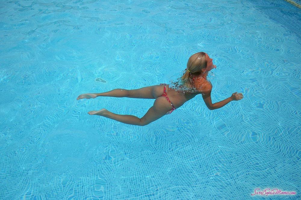 Sophie Moone takes her sexy bikini by the pool and shows us her big round boobs.