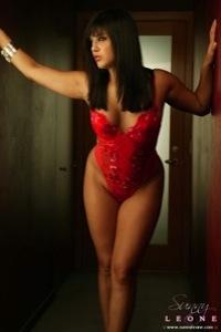 Sunny Leone takes her sexy red lingerie off and teases us in slutty high heels.