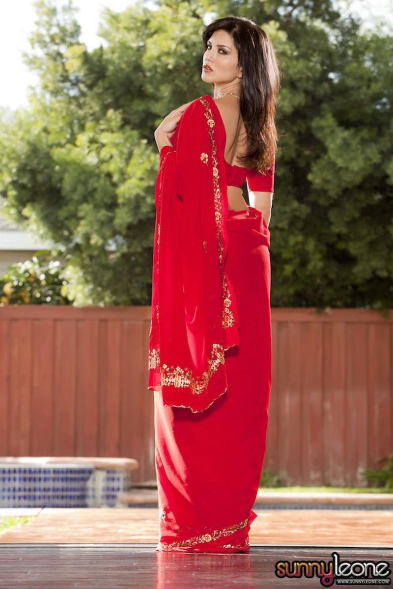 Sunny Leone strips her sexy red lingerie outdoors and shows us her amazing big jugs.