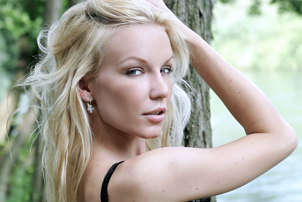 Sylvie Sinner takes her sexy black corset in the woods and shows her little boobs.