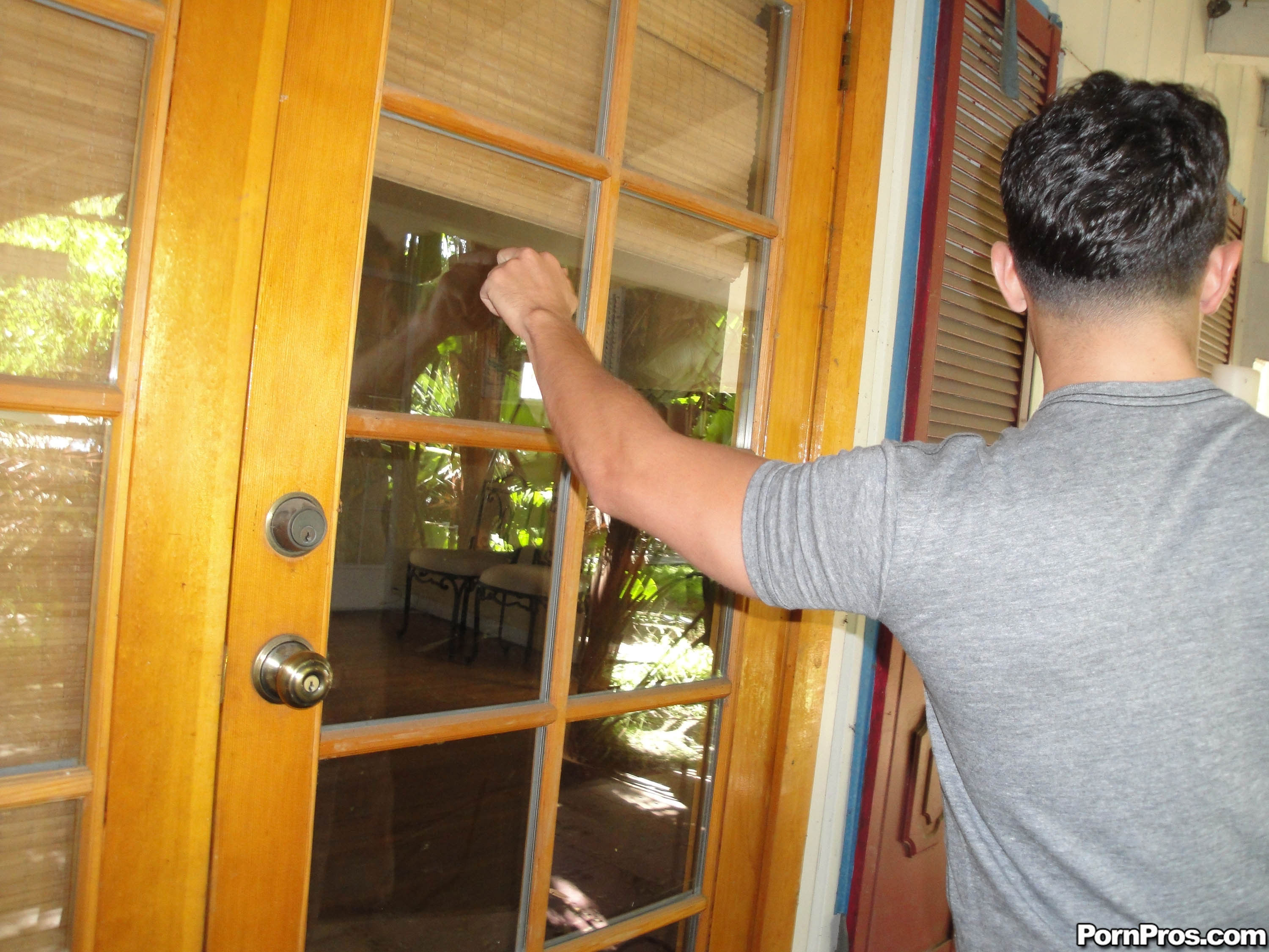 Dude comes to his loud neighbor. He wanted to fight with her but fucks her instead of that