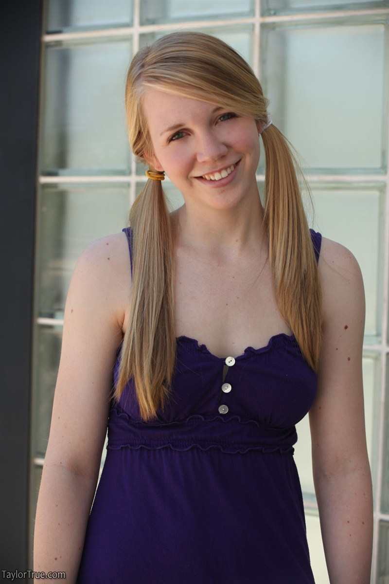 Alluring blonde cuttie Taylor True strips for the camera outdoors and shows off.