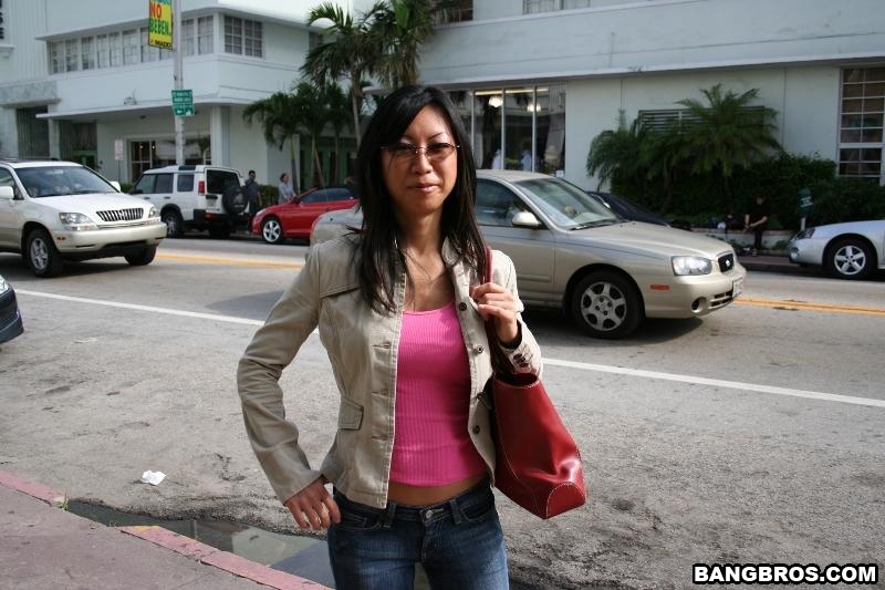 Tia Ling takes her tight blue jeans on the sofa and rides a huge throbbing shaft.
