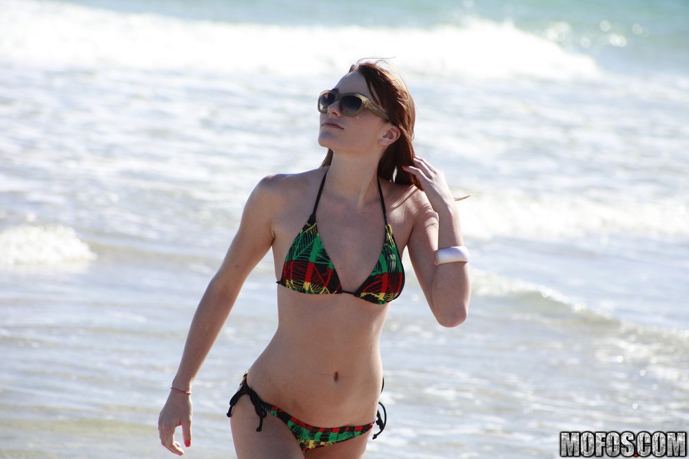 Tiffany Haze takes her slutty bikini outdoors on the beach and shows us her hot ass.