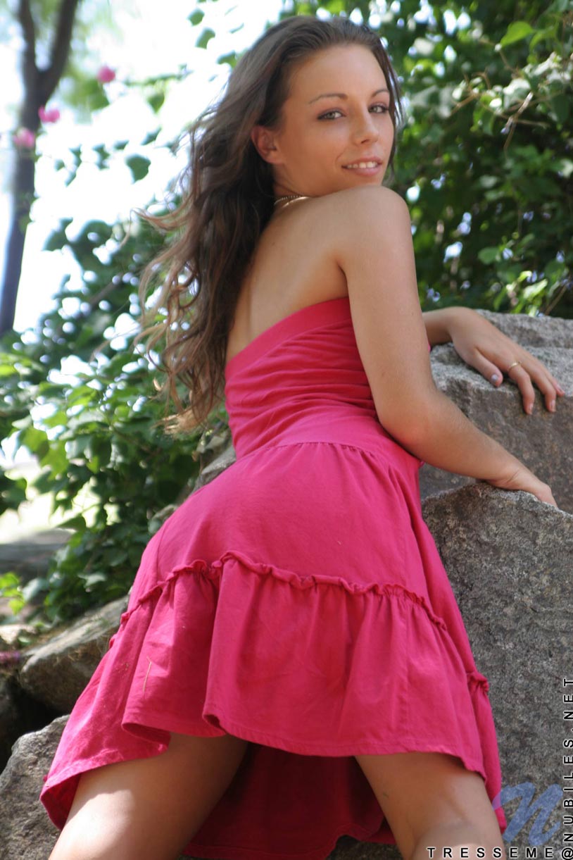 Tresseme Nubiles strips her sexy pink dress and shows us her amazing tight ass.