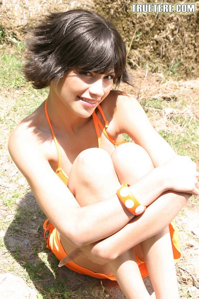 Attractive teen gal True Tere strips outdoors and shows us her fuckable tight ass.