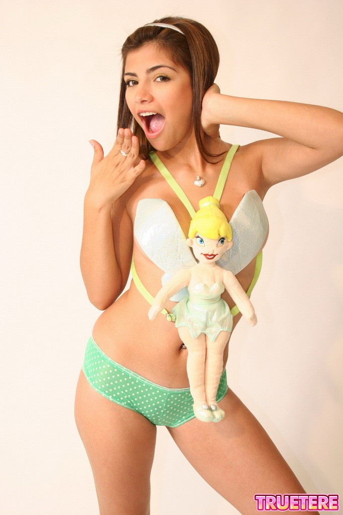Cute teen gal True Tere takes off her green panties and shows us her hot booty.