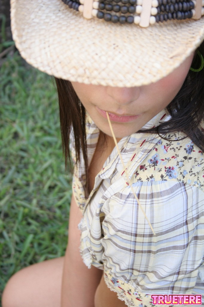 Hot teen gal True Tere takes off her denim shorts outdoors and shows her round ass.