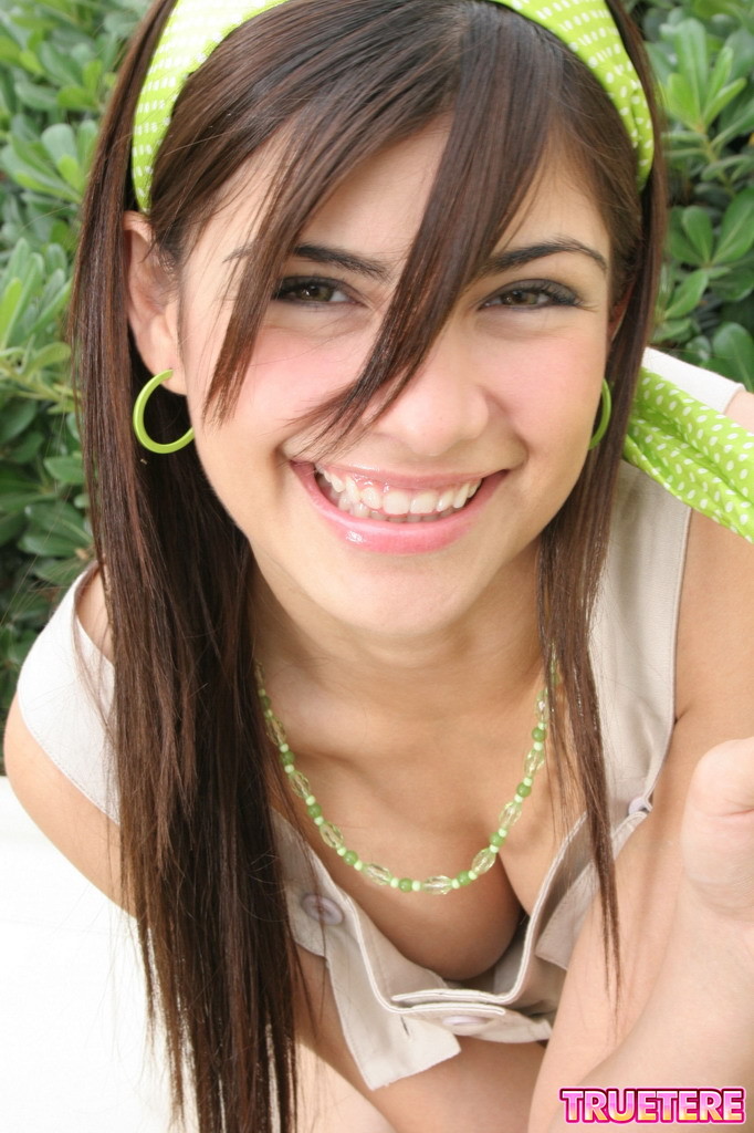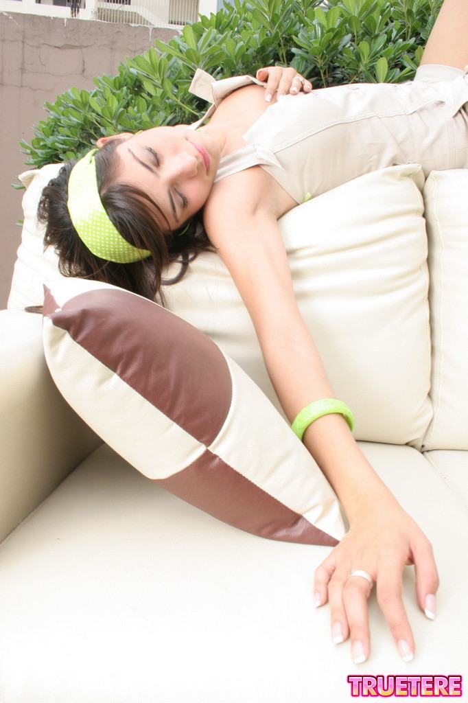 Beautiful and seductive brunette True Tere takes off her clothes and shows off.