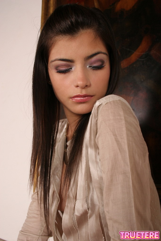 Hot and lusty brunette True Tere takes off her sexy lingerie and shows us her body.