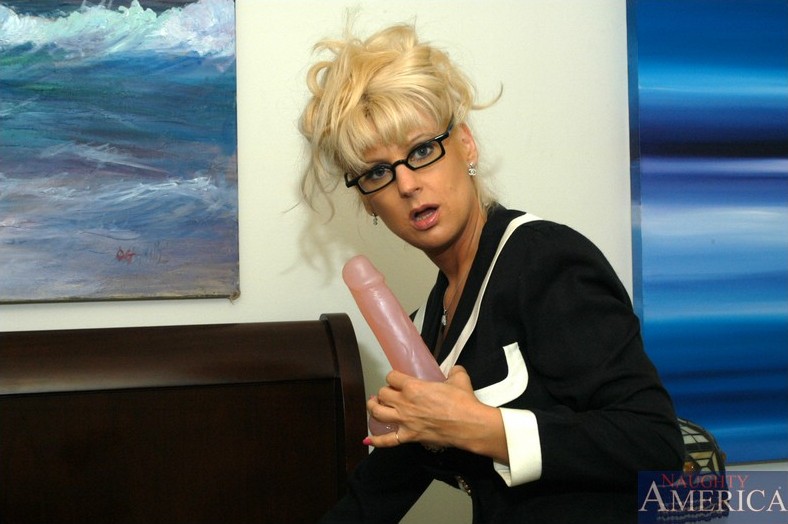 Classy blonde Vicki Vogue with nice boobs wearing glasses getting fucked doggy style.