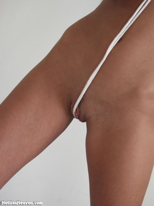 Wanda Curtis gets off her white lingere and shows her body while playing with a rope.