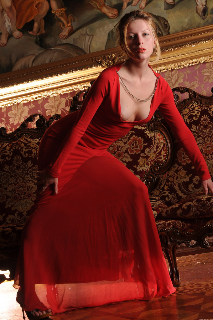 Yara A puts on a red dress to underline her body and shows she wears no lingerie.