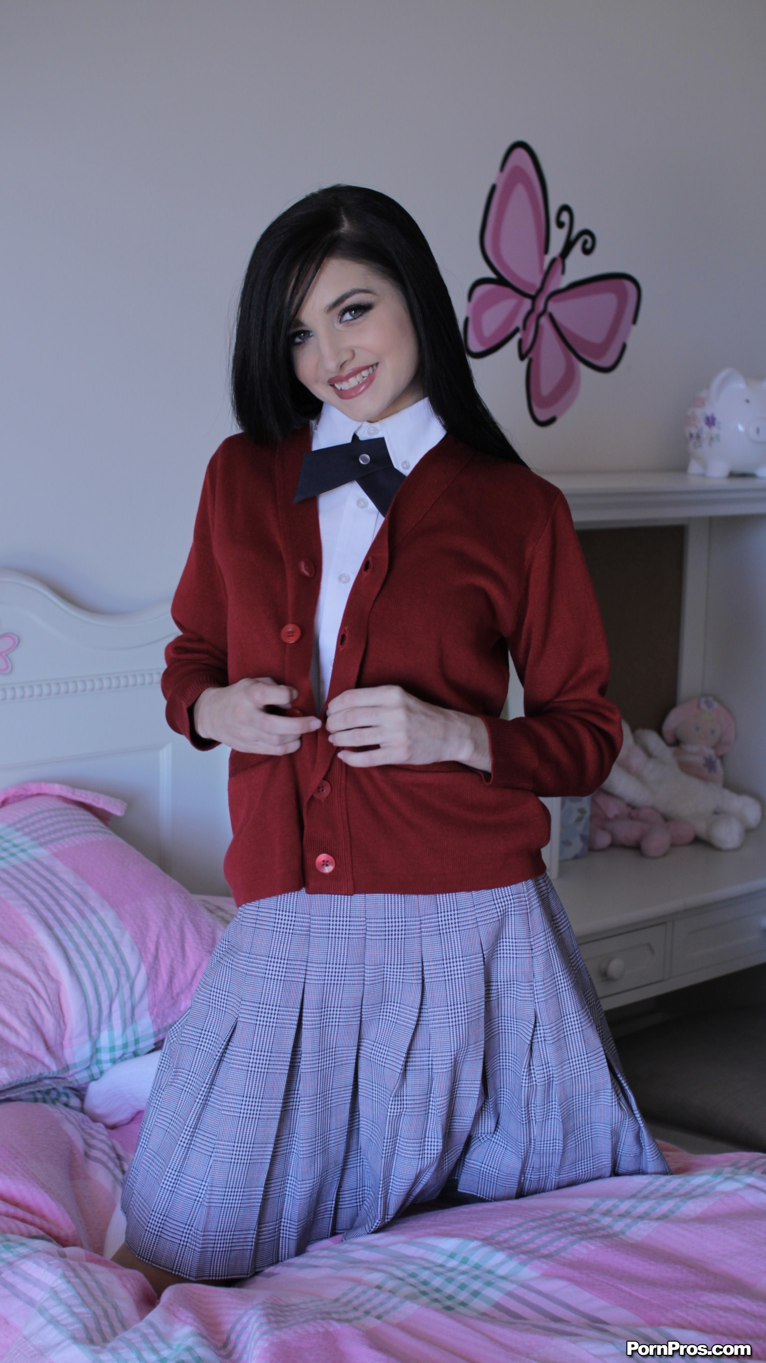 This wonderful young cutie takes off her sexy clothes and gets down to test that large dick